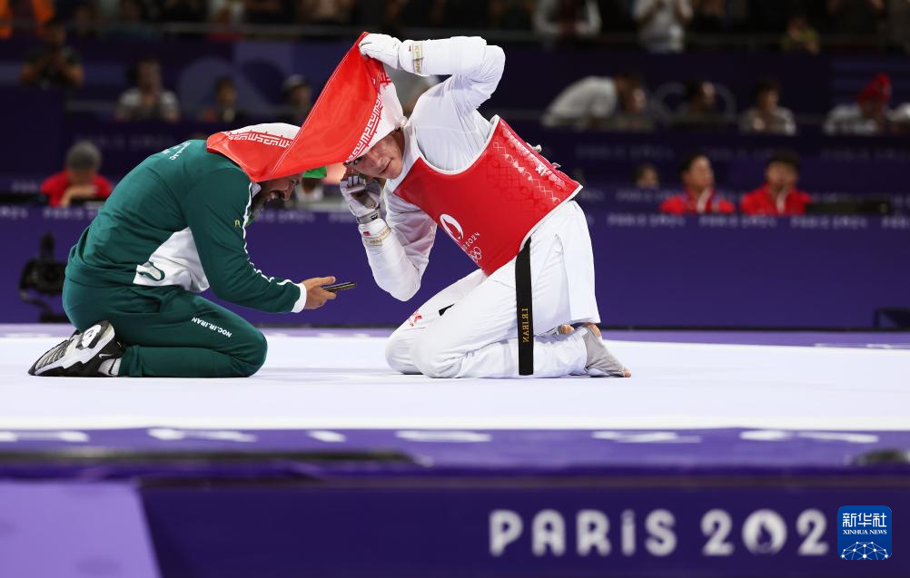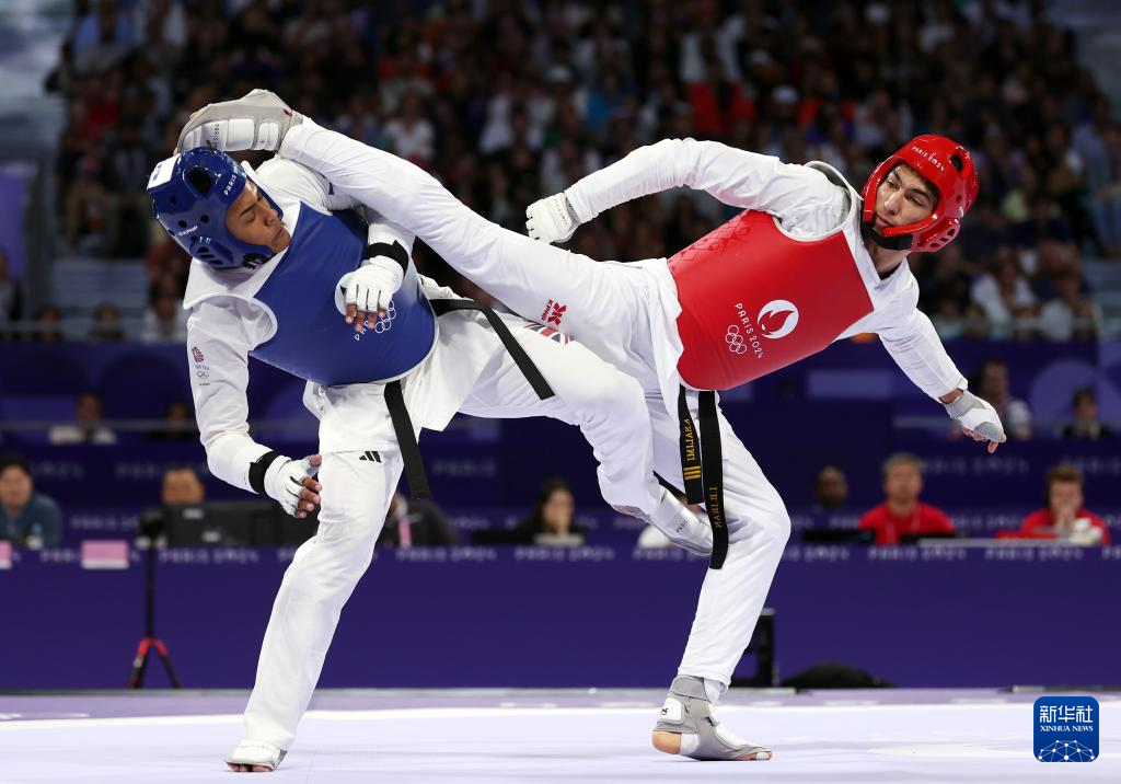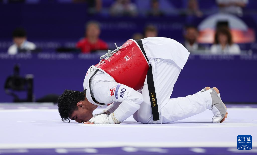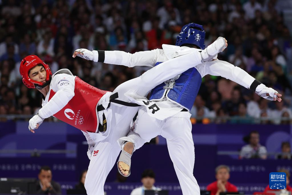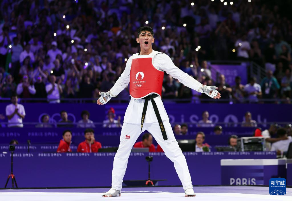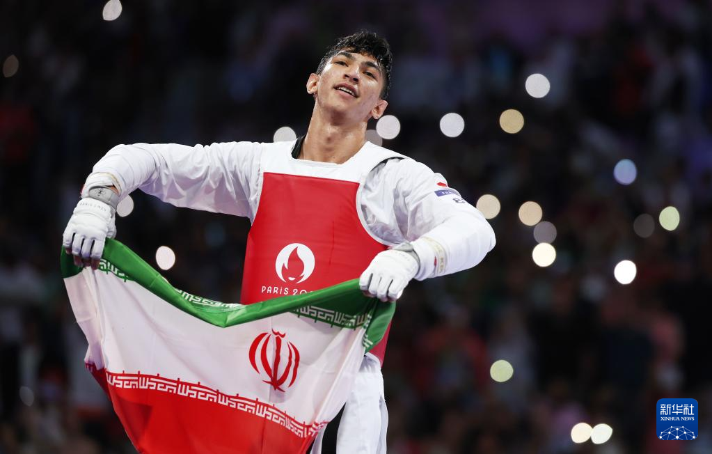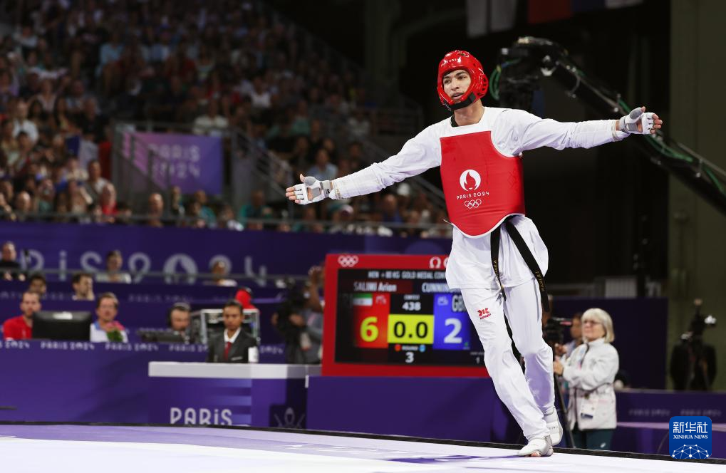 当日,在巴黎大皇宫举行的巴黎奥运会跆拳道男子80公斤以上级决赛中,伊朗选手萨利米战胜英国选手卡登·坎宁安,获得冠军。