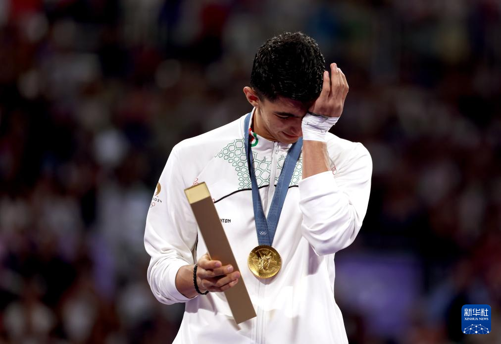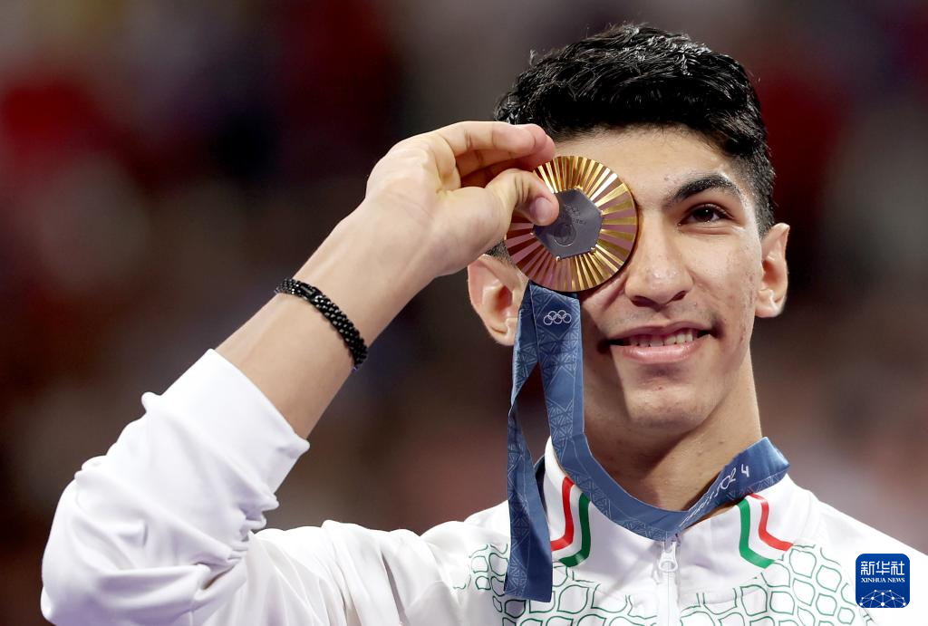 8月10日,伊朗选手萨利米在颁奖仪式上。