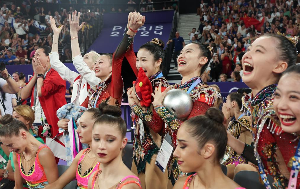 “今天真的太开心了,我们多年的努力终于绽放巴黎!”中国艺术体操队集体组教练孙丹赛后说:“我们等待这个时刻很久了,上次还是在北京奥运会获得集体全能银牌,我们希望中国可以在艺术类的体育项目中占有一席之地,因为这类项目涵盖了体育和文化,具有不一样的意义。”
