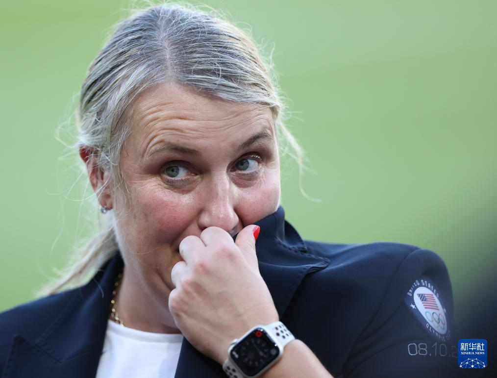 8月10日,美国队主教练海斯在场边观看颁奖仪式。