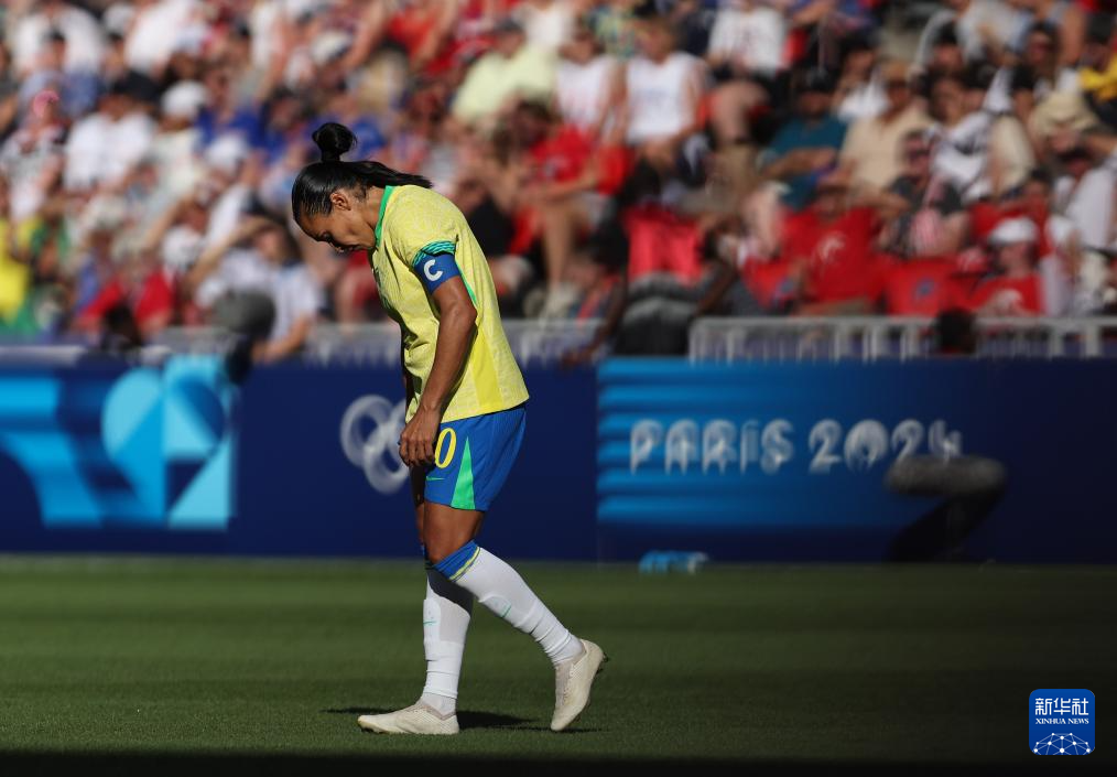 8月10日,巴西队球员玛塔在比赛中错失机会。