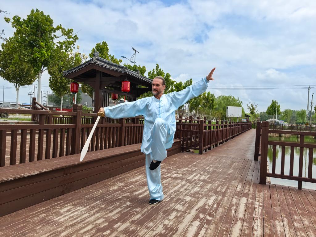 “这次我来沧州参加国际武术比赛。我的参赛项目是形意刀和杨氏太极拳40式。我早就准备好了,为此一直在努力练习。”他说。