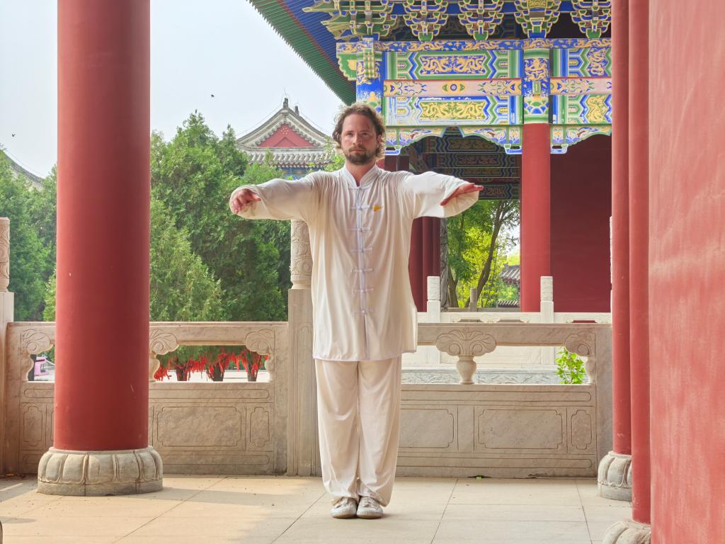 宽敞的武术训练大厅里,习武者济济一堂,大家根据各自的基础,跟随不同的教练,学习不同的拳种器械。其中,正在练习杨氏太极拳40式的俄罗斯武术爱好者马克西姆·塞雷达分外显眼。他是沧州的老朋友了。