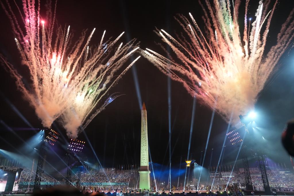 8月28日,巴黎协和广场的开幕式现场。新华社记者 高静 摄