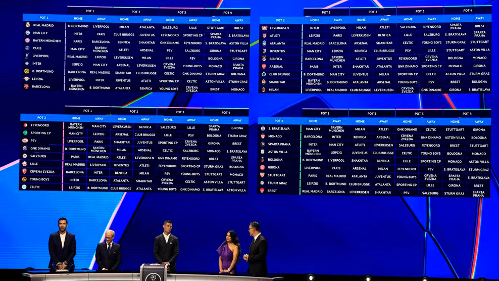 新赛季的欧冠联赛进行了重大改革,除了参赛球队由之前的32支增加到36支,传统的小组赛赛制也被取消。在全新的联赛阶段中,36支球队被分为四档,各支球队都将与来自每档的两支球队、共计8个不同对手进行4主4客的交锋。