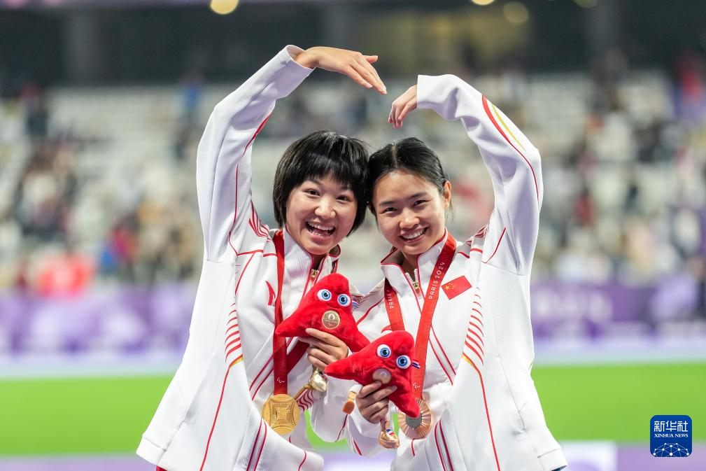 8月30日,中国选手文晓燕(左)和蒋芬芬在颁奖仪式上。新华社记者 张铖 摄