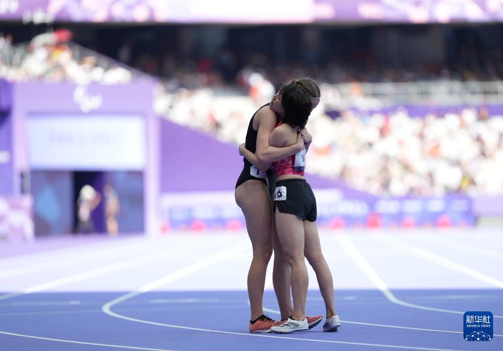 9月1日,冠军中国选手史逸婷(右)在比赛后与获得亚军的新西兰选手艾奇逊拥抱。