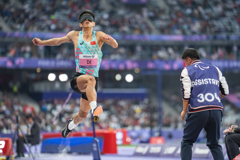 而就在几天前,邸东东在法兰西体育场的奋力一跃也感动了许多人。在男子跳远T11级比赛中,随着教练员王琳的一声声口令“来、来、来……”,邸东东开始助跑、加速,就在口令停止的刹那,邸东东高高跃起,在空中划出一道美丽的弧线。6米85的成绩一举打破尘封10年的世界纪录,他以巨大优势将金牌收入囊中。