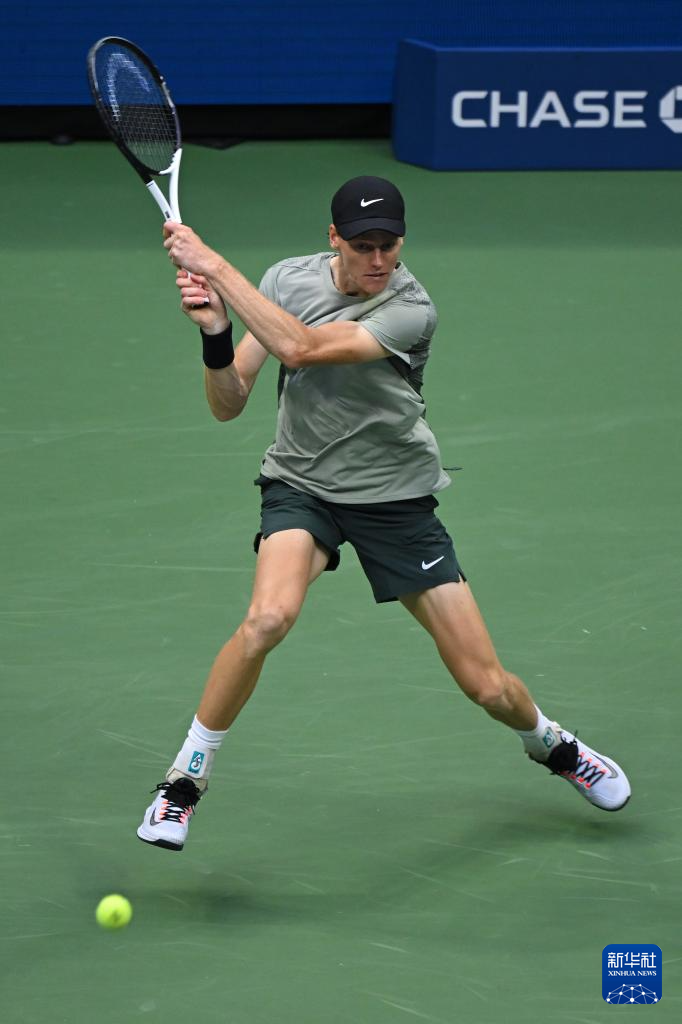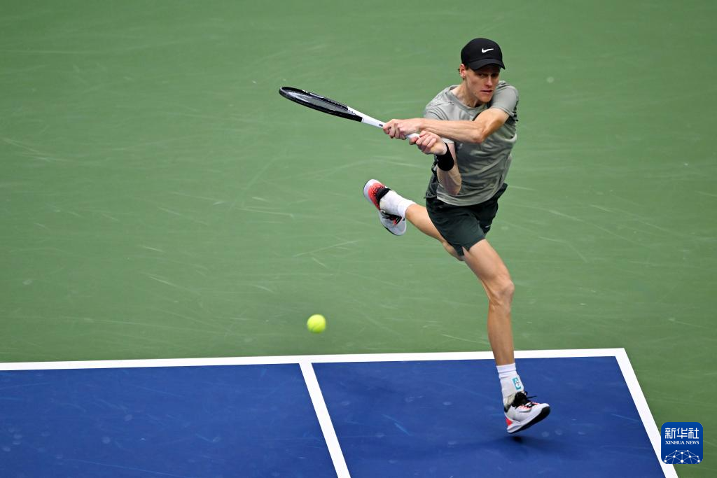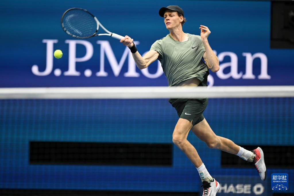 9月6日,辛纳在比赛中回球。