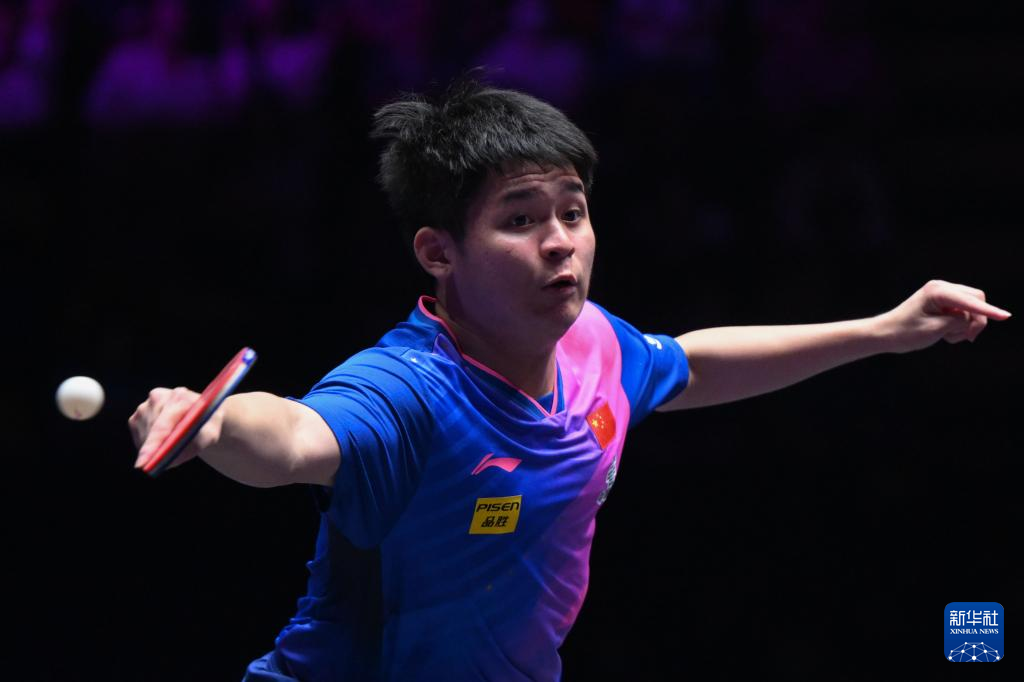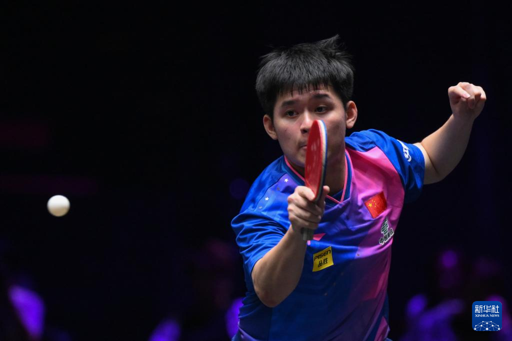 9月13日,林诗栋在比赛中回球。新华社记者 张金加 摄