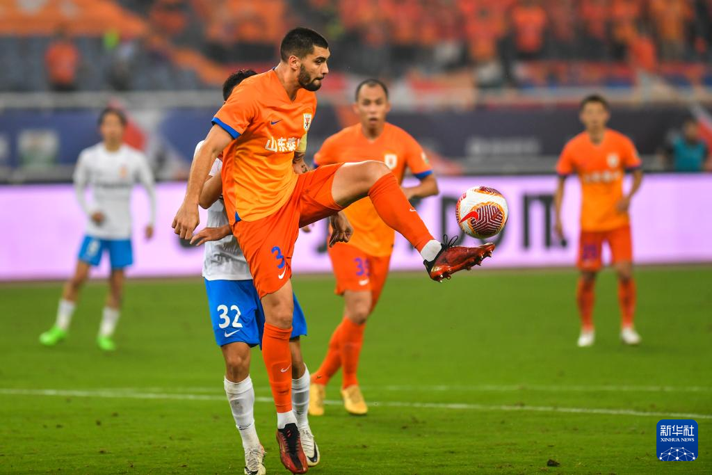 9月13日,山东泰山队球员马塞尔在比赛中停球。