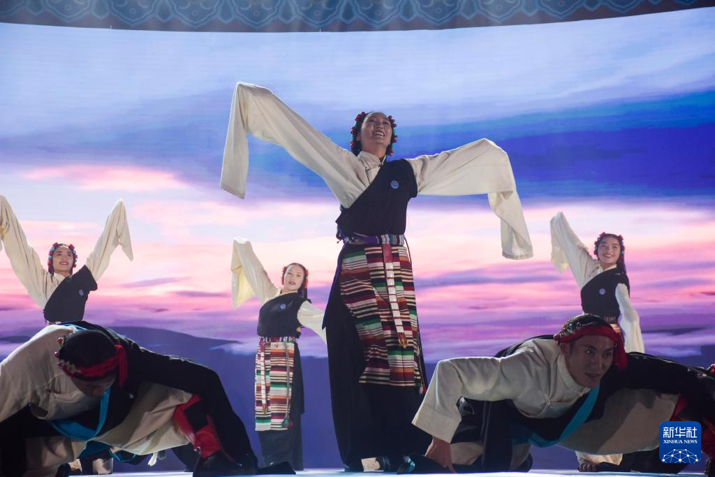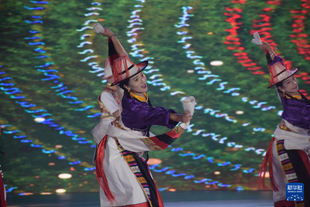 9月15日,演员在开幕式上表演藏戏。新华社发(卢丹阳摄)