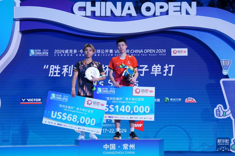 当日,在江苏省常州市举行的2024中国羽毛球公开赛男单决赛中,中国选手翁泓阳2比0战胜日本选手奈良冈功大,获得冠军。