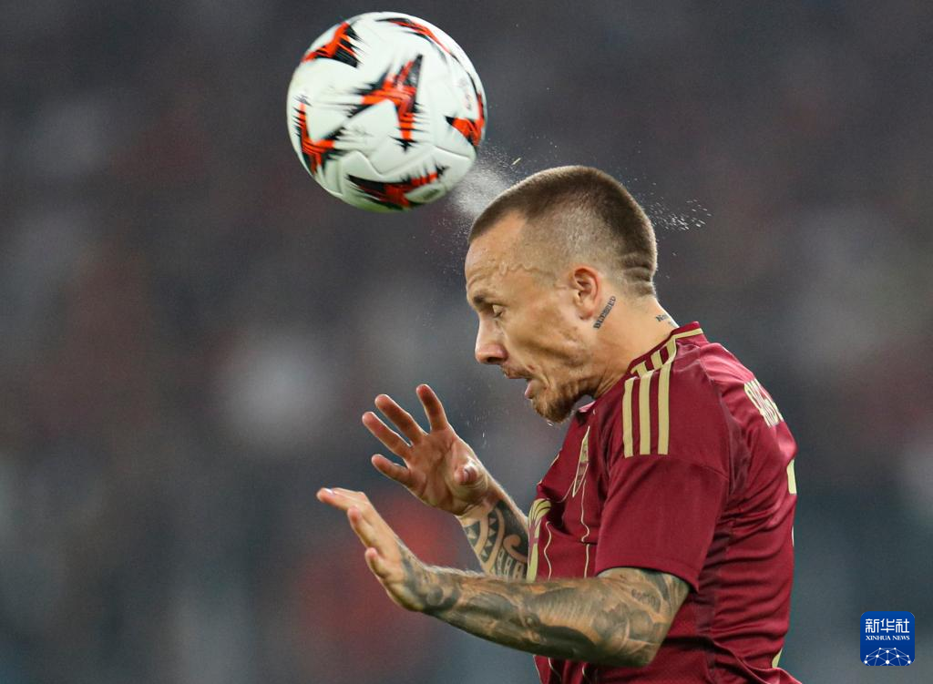 9月26日,罗马队球员安赫利诺在比赛中顶球。