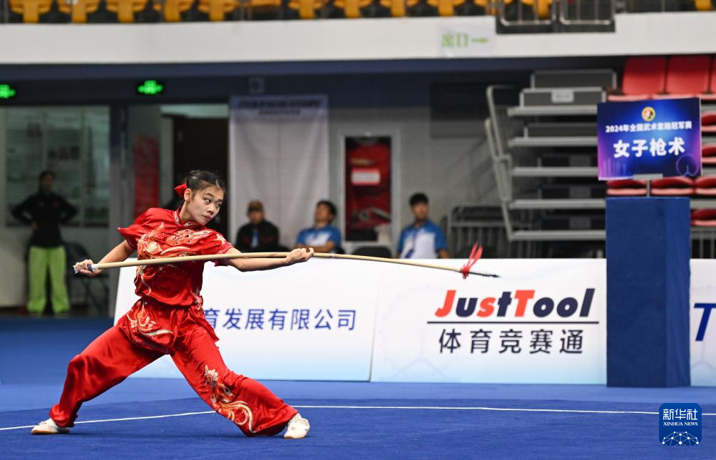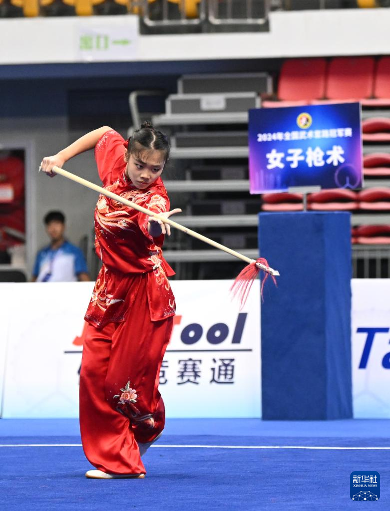 当日,在天津举行的2024年全国武术套路冠军赛女子枪术比赛中,山西选手姚洋以9.796的成绩获得第一名。