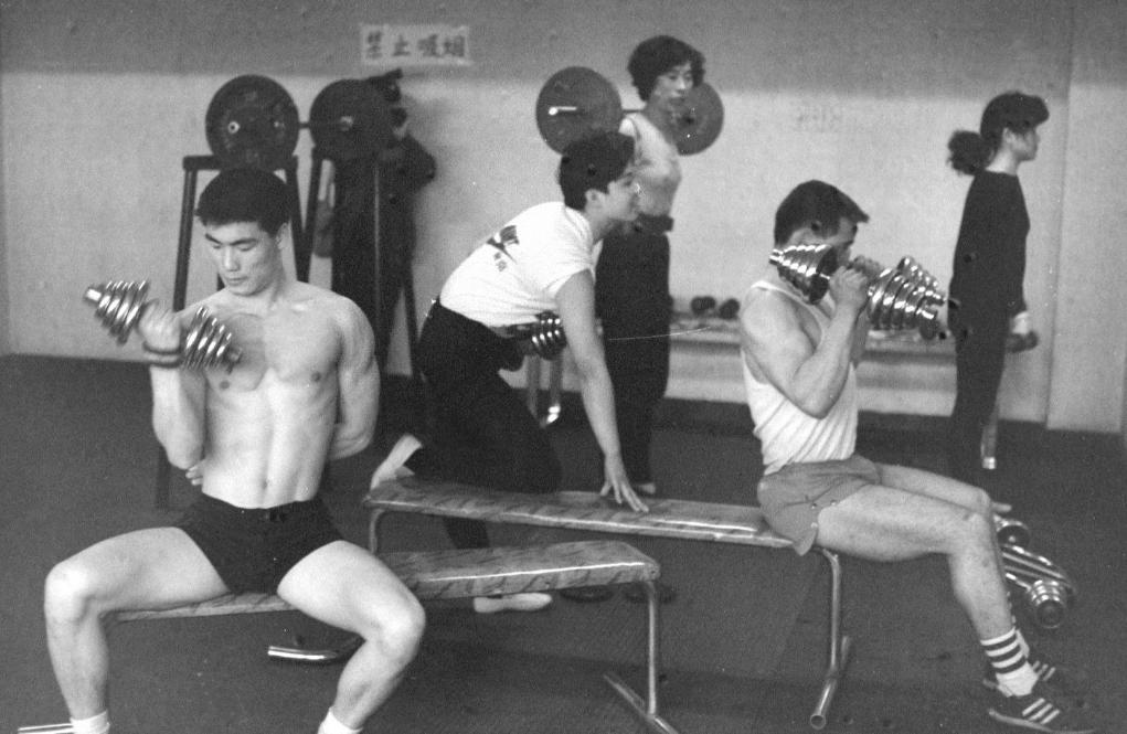1990年北京市民利用业余时间进行健美训练。新华社发