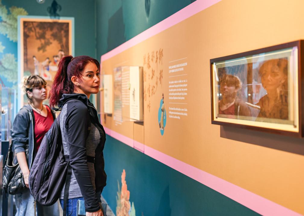 7月23日,观众在开幕式上参观。当日,“龙马风度 体育精神——中华体育文化展”在法国巴黎巴士底设计中心开幕。新华社记者 张帆 摄