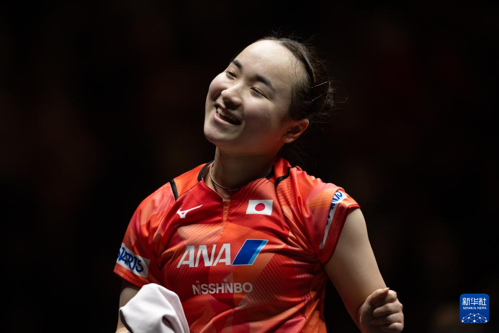 10月3日,伊藤美诚在获胜后庆祝。