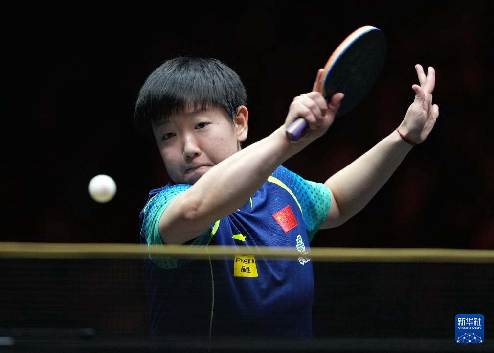 10月5日,孙颖莎在比赛中回球。