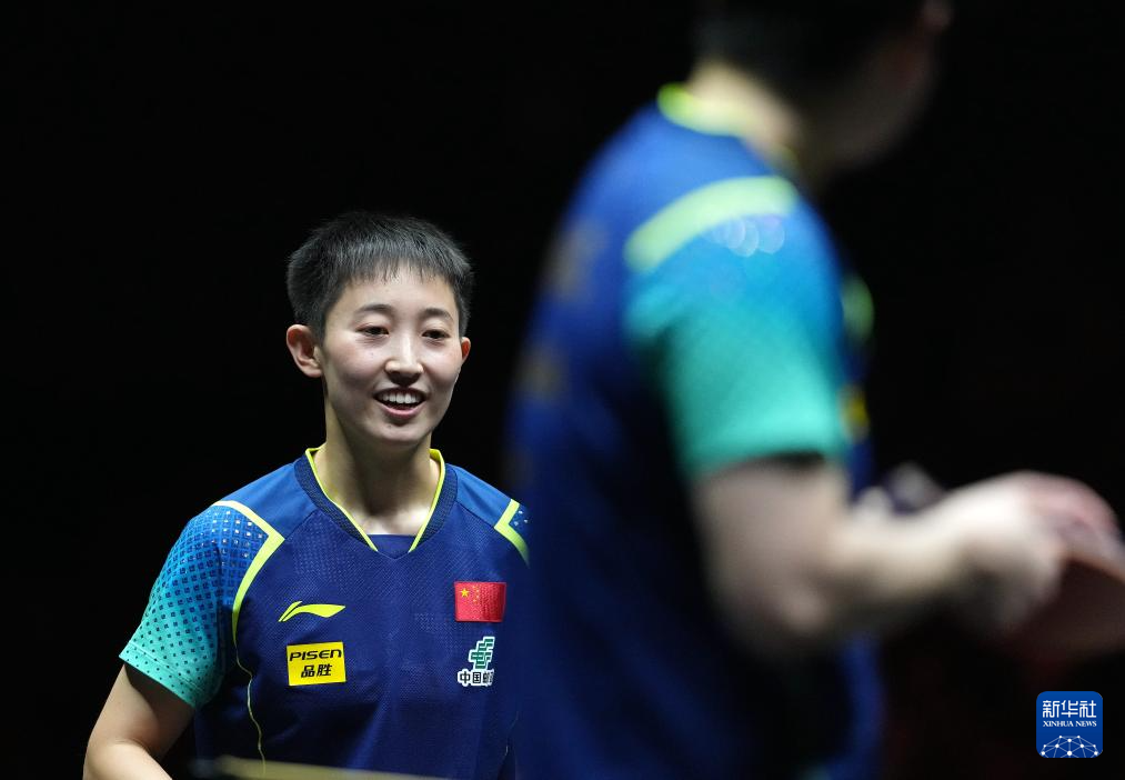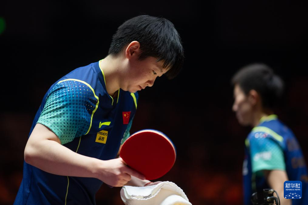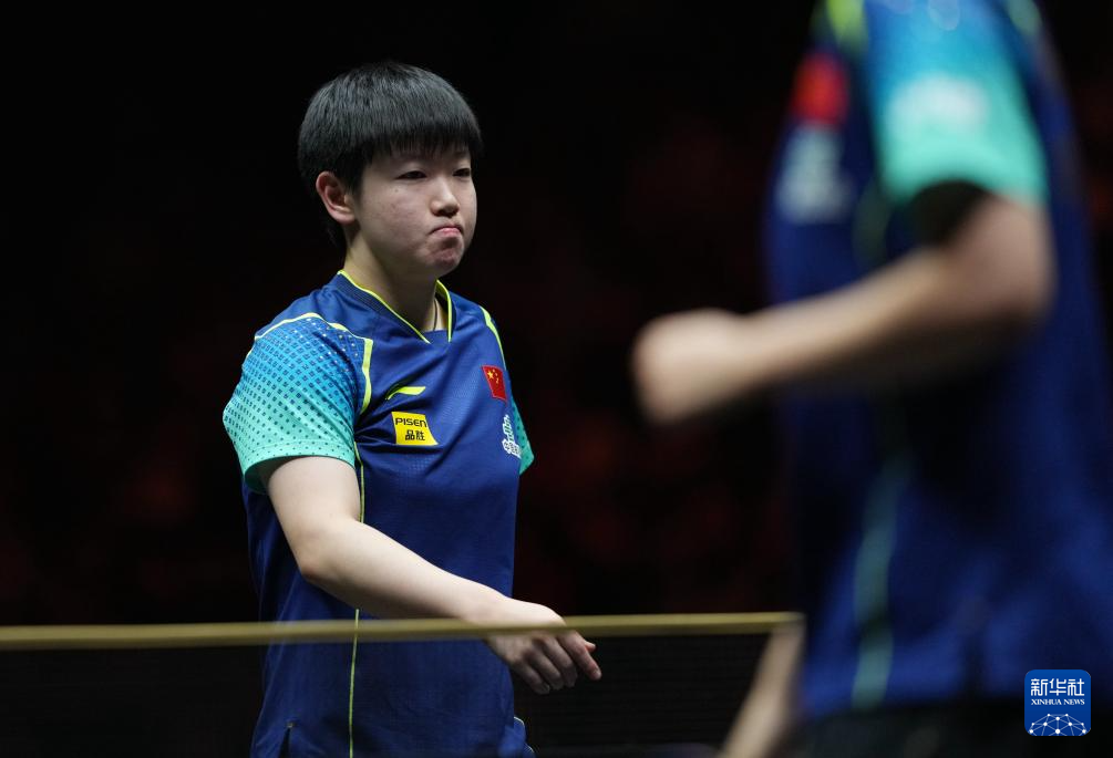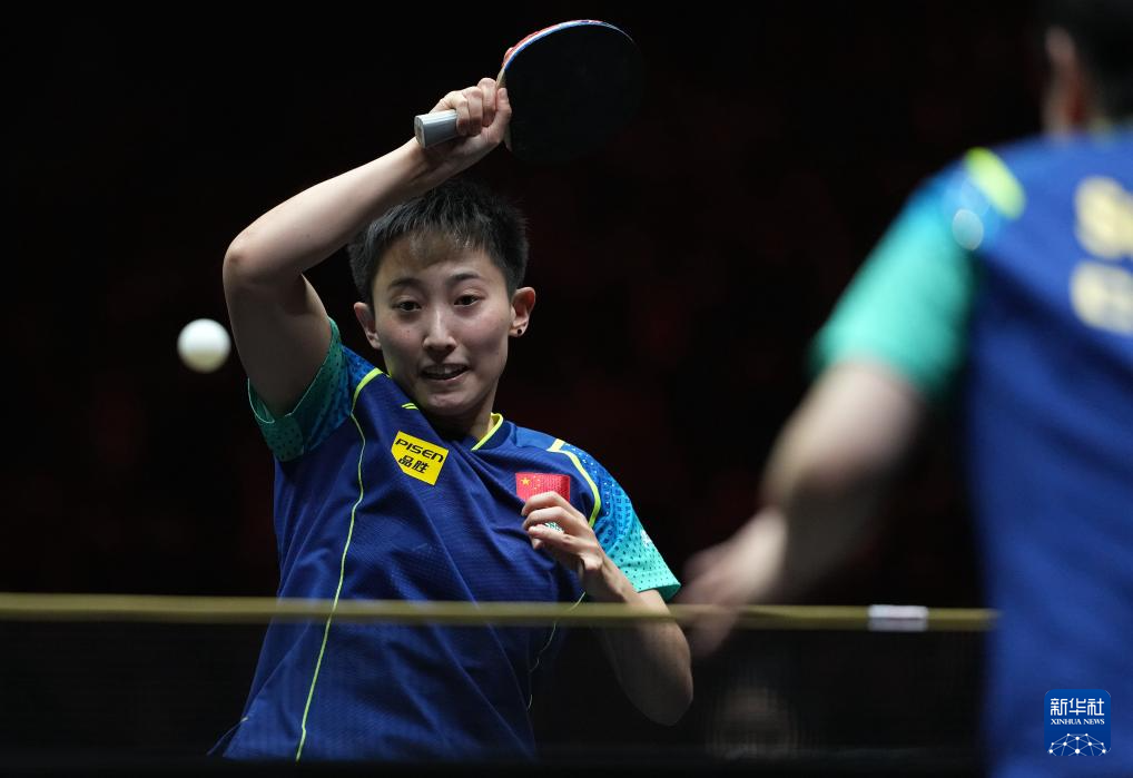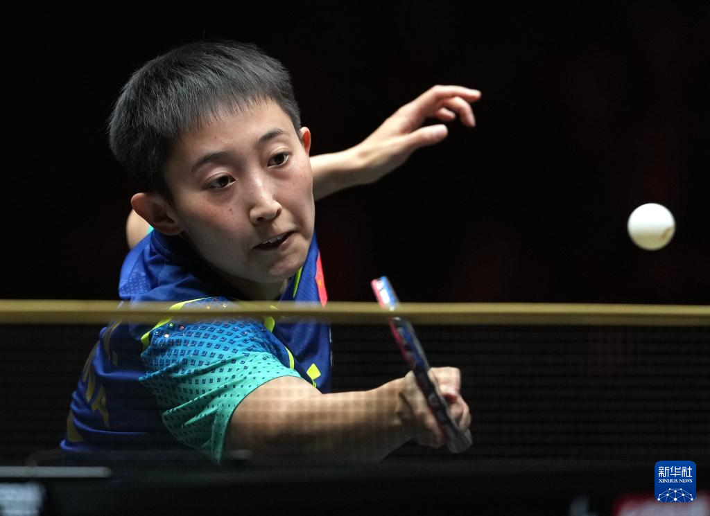 10月5日,孙颖莎(左)在比赛中回球。