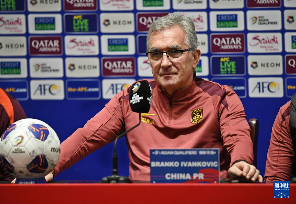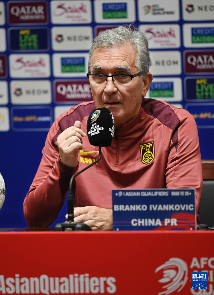 10月14日,中国队主教练伊万科维奇在发布会上。
