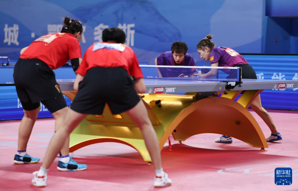 10月15日,赵钊彦(右二)/孙铭阳(右一)、林高远(左二)/刘诗雯(左一)在比赛中。