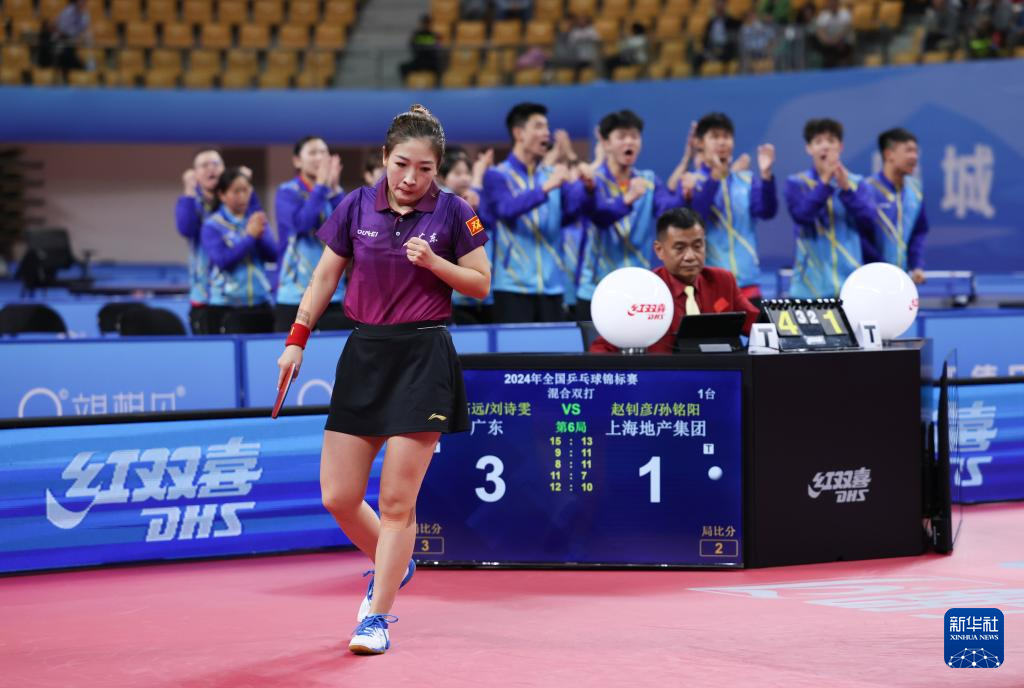 当日,在内蒙古鄂尔多斯举办的2024年全国乒乓球锦标赛混双决赛中,广东队组合林高远/刘诗雯4比2战胜上海地产集团队组合赵钊彦/孙铭阳,夺得冠军。