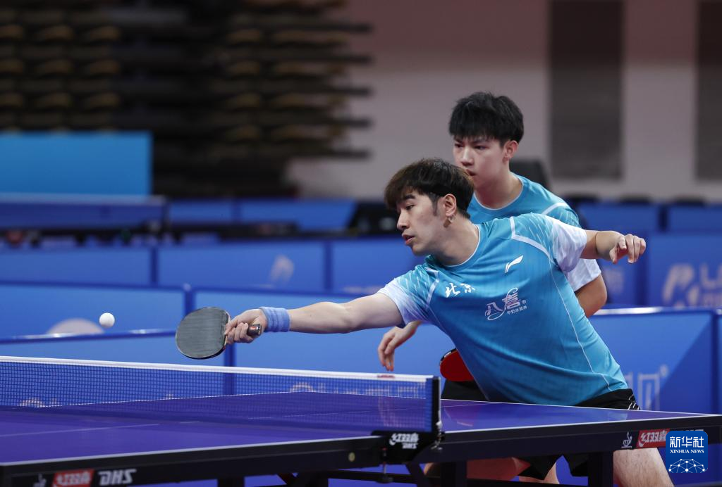 10月16日,北京八喜队组合黄友政/闫安(前)在双打比赛中,他们战胜甘肃队组合李晓博/胡哲铭。