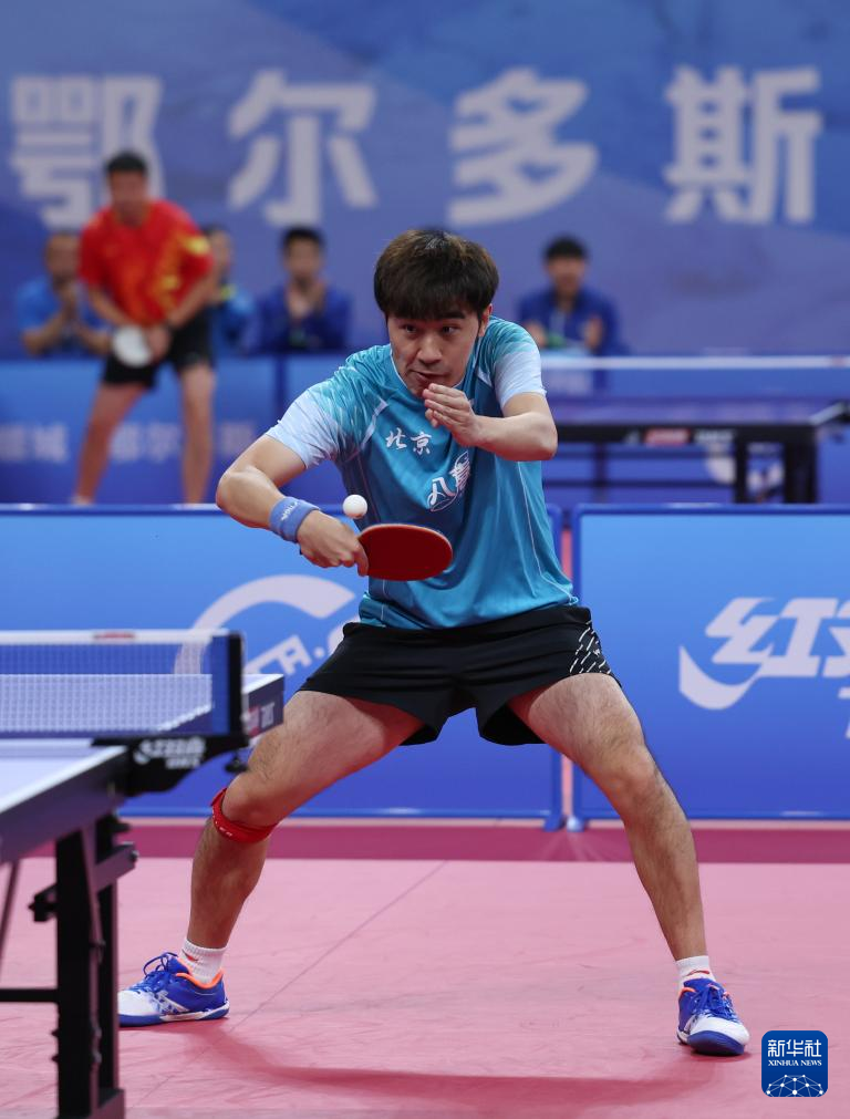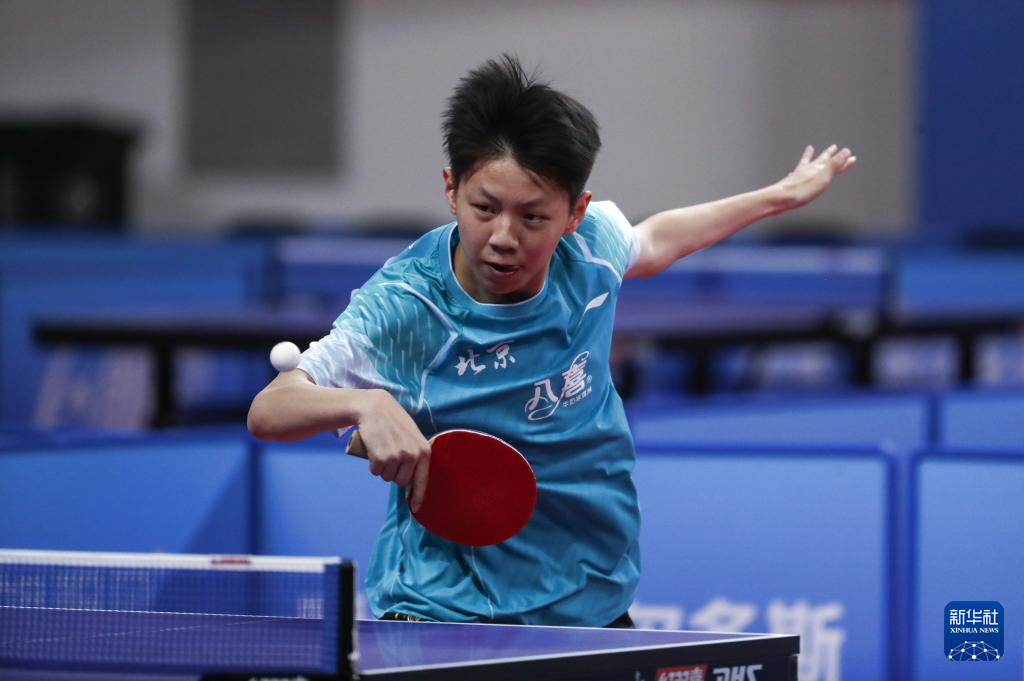 当日,在内蒙古鄂尔多斯举行的2024年全国乒乓球锦标赛男子团体小组赛首轮比赛中,北京八喜队3比0战胜甘肃队。