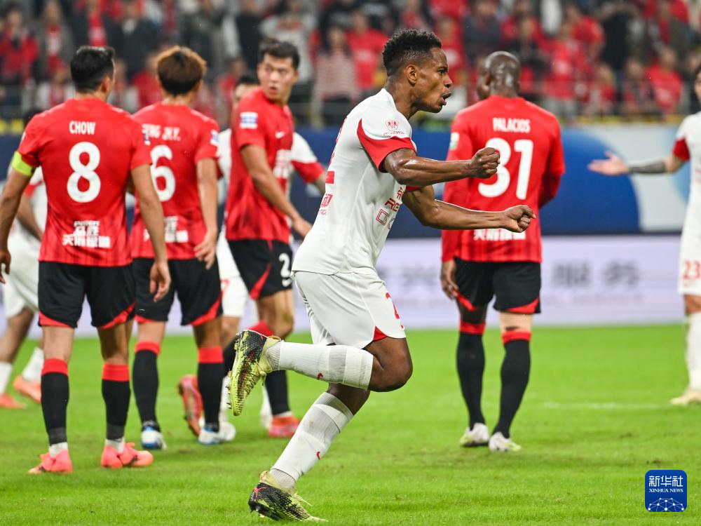 10月18日,上海海港队球员马修斯·尤萨(前)在得分后庆祝。