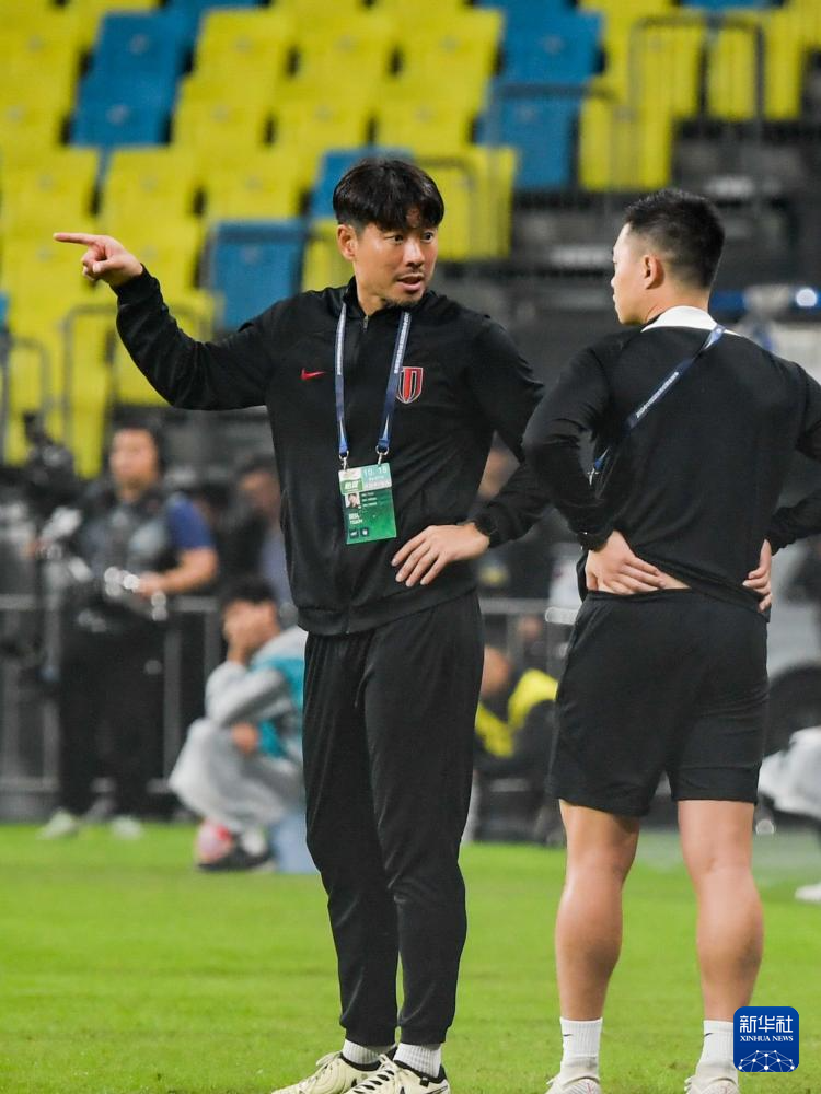 10月18日,成都蓉城队代理主教练河大成(左)在场边指挥。