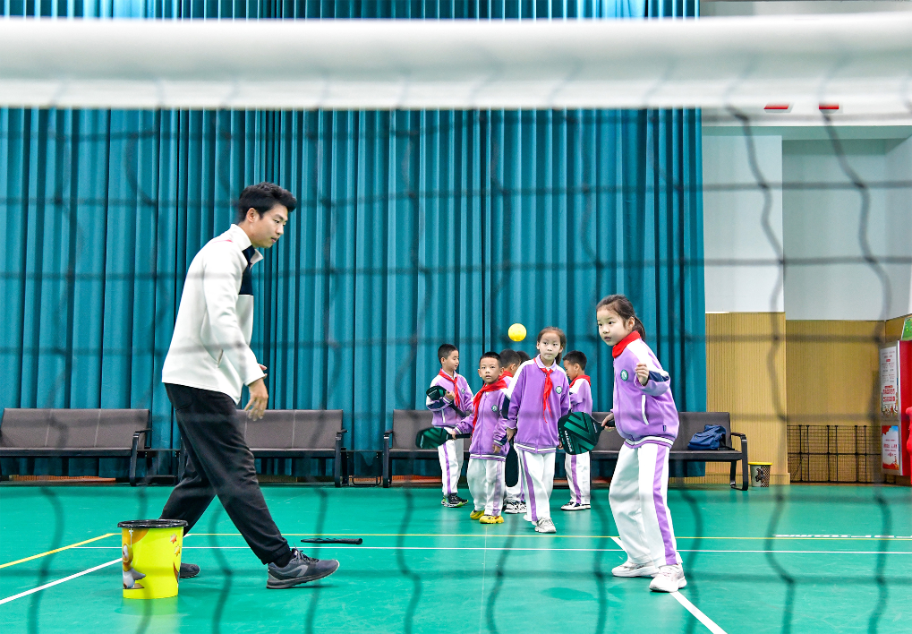保定市隆兴小学学生在练习匹克球