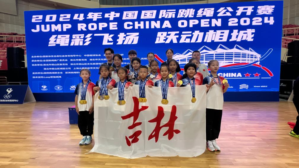 代表吉林省跳绳协会参赛的15名运动员中