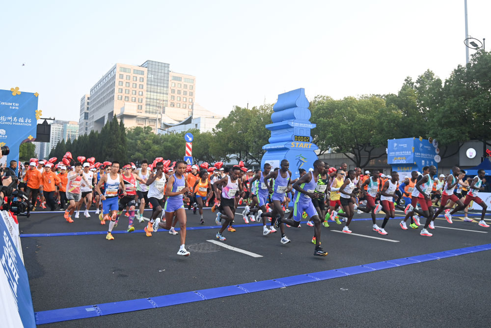 新华社杭州11月3日电(记者夏亮)2024杭州马拉松3日上午7时在黄龙体育中心鸣枪开跑。经过激烈角逐,来自肯尼亚的选手包揽全马男、女组冠军,并分别刷新赛会纪录。