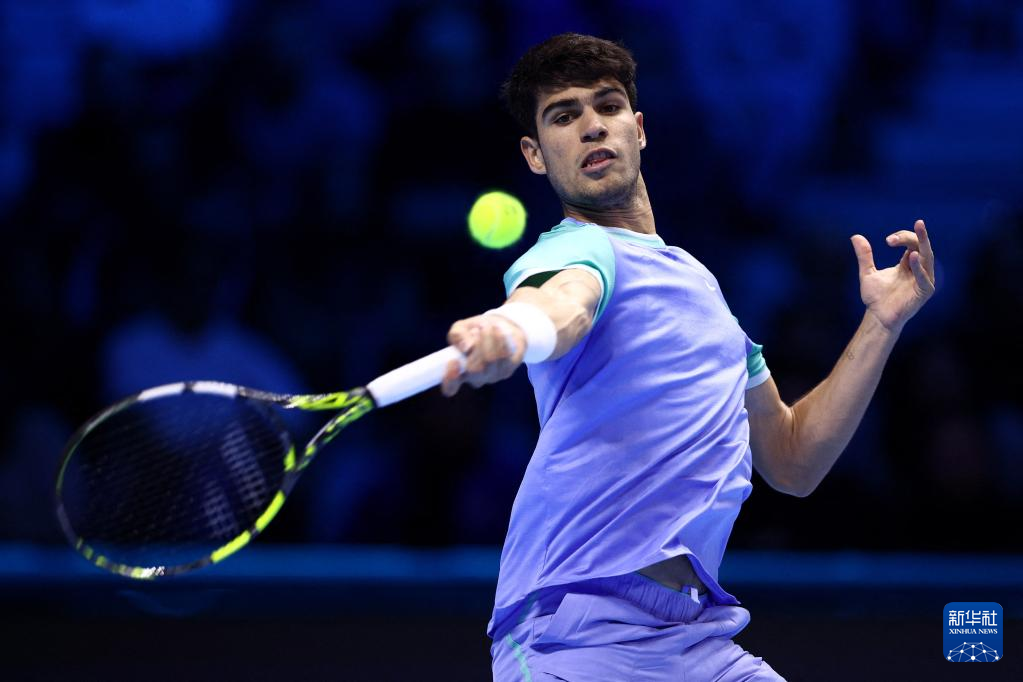 11月11日,阿尔卡拉斯在比赛中回球。新华社/路透