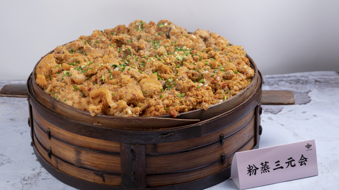 粉蒸三元会正是取其音形寓意,祝愿食客“步步高升,连中三元”。