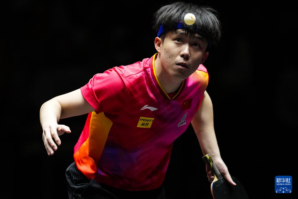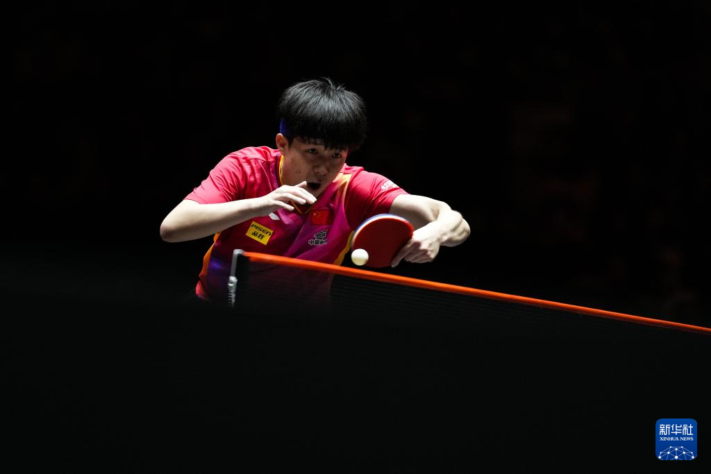11月24日,中国选手王楚钦在比赛中回球。