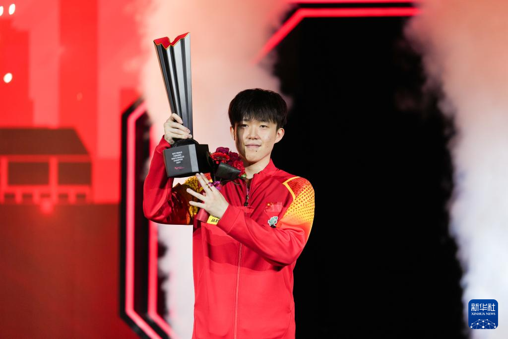 11月24日,中国选手王楚钦在颁奖仪式上。