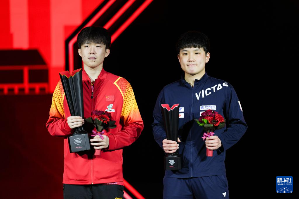 当日,在日本福冈县北九州市举行的2024世界乒乓球职业大联盟(WTT)福冈总决赛男单决赛中,中国选手王楚钦4比0战胜日本选手张本智和,获得冠军。