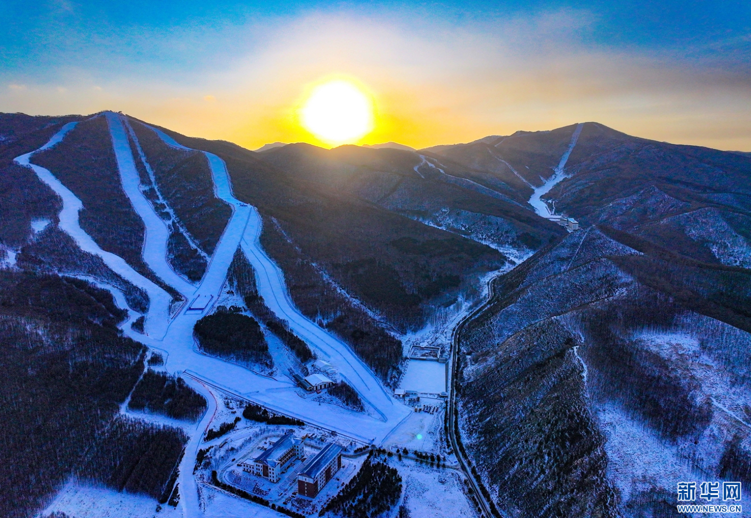 美林谷滑雪场景色(无人机航拍资料图)。新华网发
