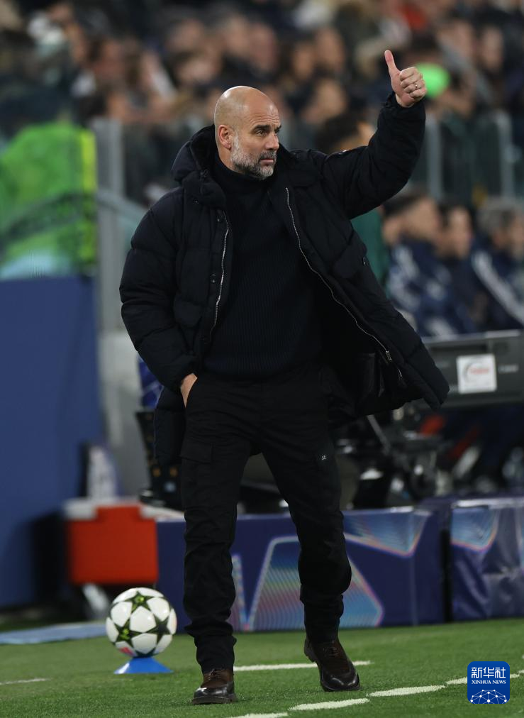 12月11日,曼城队主教练瓜迪奥拉在场边指挥。