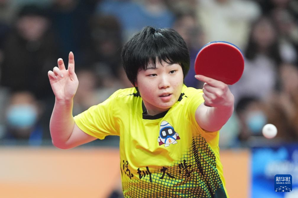 12月12日,深圳大学队选手蒯曼在女子团体单打比赛中,她3比1战胜成都高新若水居队选手郭琳。最终,深圳大学队3比0战胜成都高新若水居队。