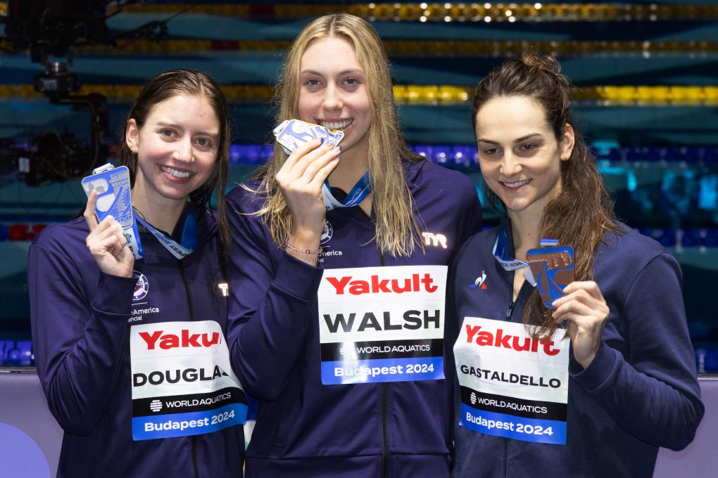 女子100米混合泳决赛上,沃尔什以55秒11打破世界纪录夺冠。美国另外一位奥运冠军道格拉斯摘得银牌,法国选手加斯塔尔代洛收获铜牌。沃尔什本届赛会已揽入4枚金牌,在不同项目中7次打破世界纪录,其中6次是个人项目,1次是接力项目。