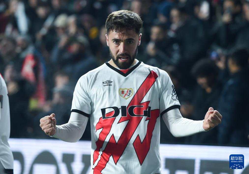 12月14日,巴列卡诺队球员乌奈·洛佩斯在比赛中庆祝进球。