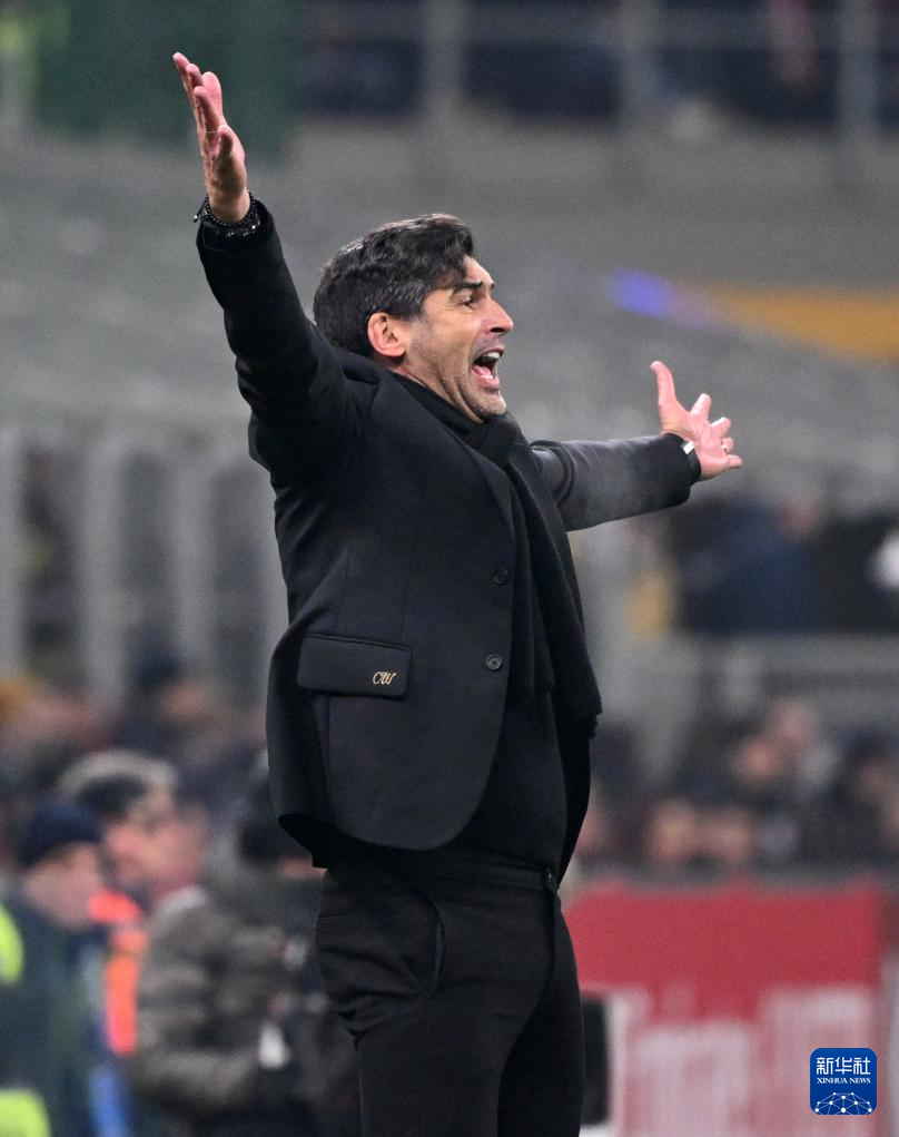12月15日,AC米兰队主教练丰塞卡在场边指挥。