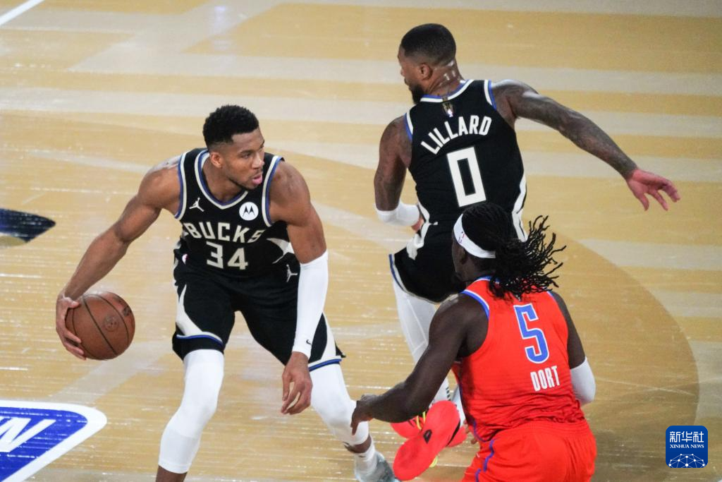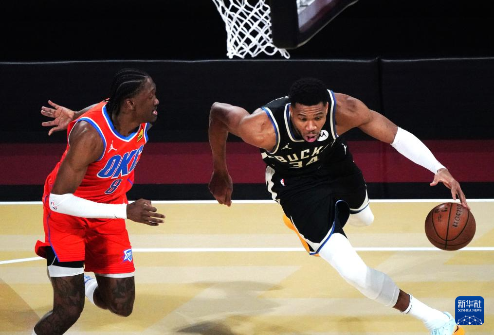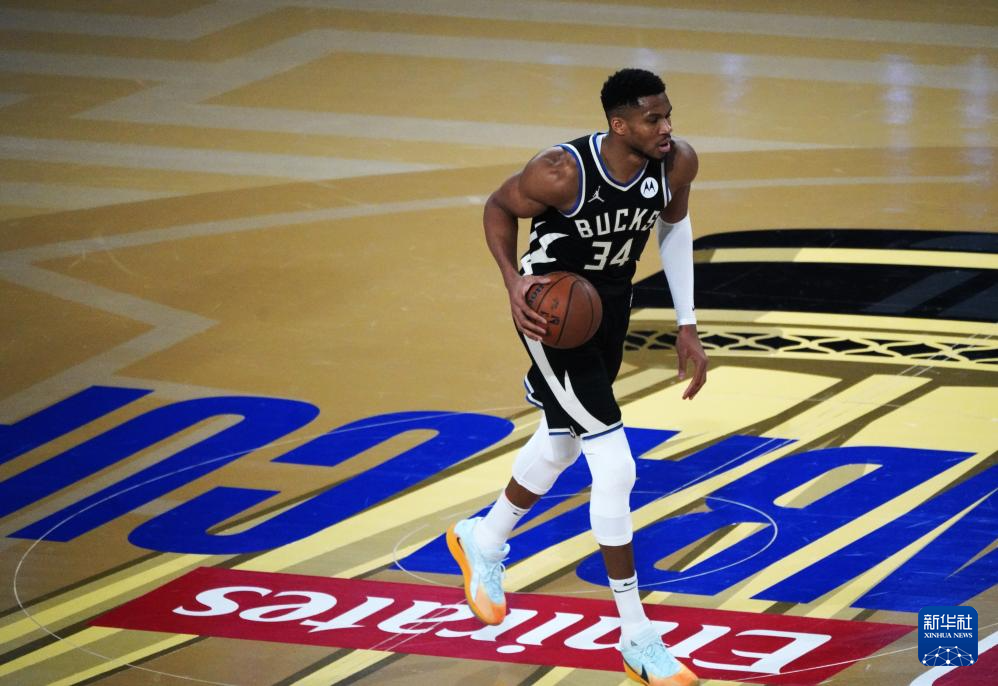 12月17日,雄鹿队球员安特托昆博在比赛中控球。新华社记者 吴晓凌 摄