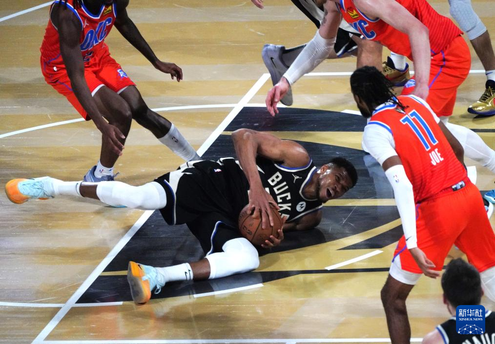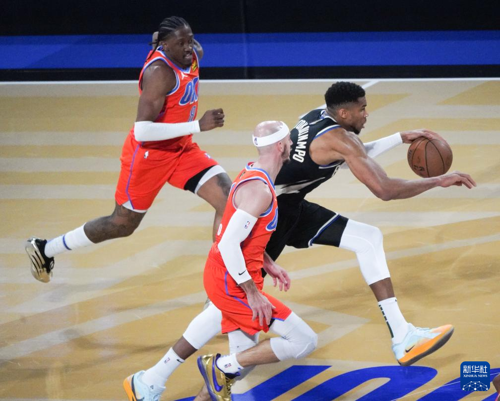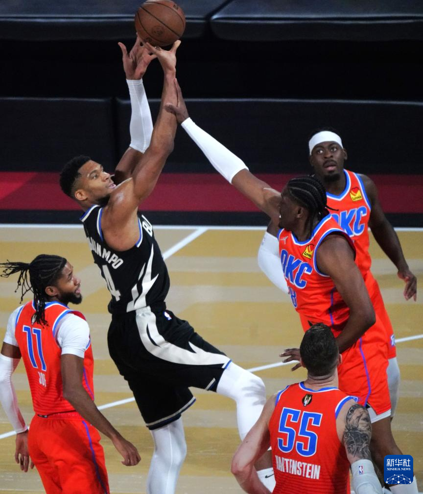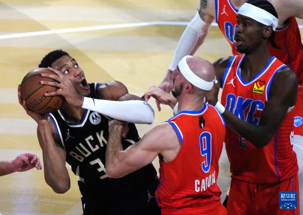 12月17日,雄鹿队球员安特托昆博(中)在比赛中进攻。新华社记者 吴晓凌 摄
