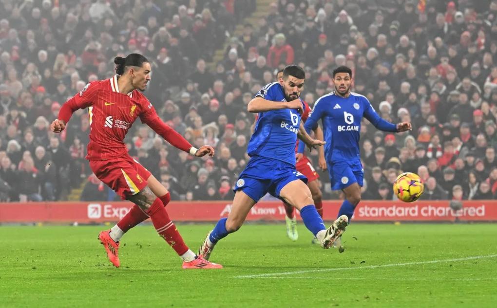 利物浦和莱斯特城在比赛中。图片来自英超官网