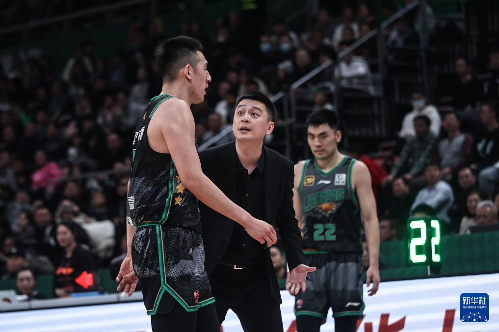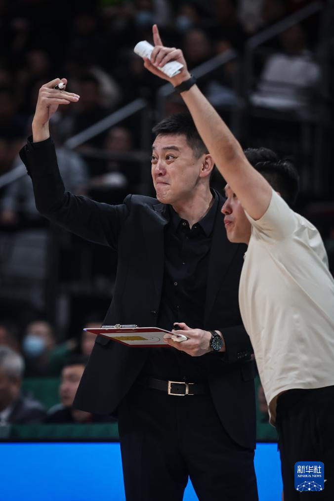 12月28日,辽宁本钢队主教练杨鸣(左)在比赛中为球员布置战术。新华社记者 潘昱龙 摄