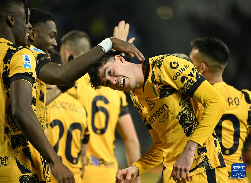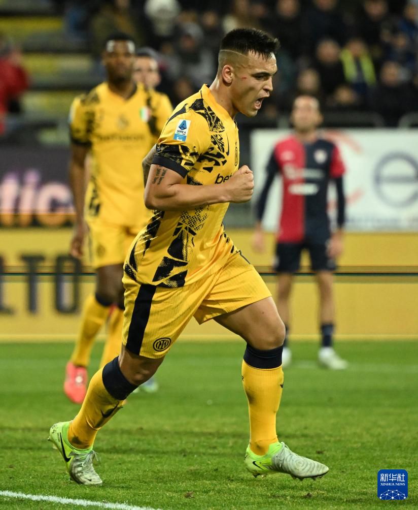 12月28日,国际米兰队球员劳塔罗·马丁内斯庆祝进球。新华社发(迭戈摄)